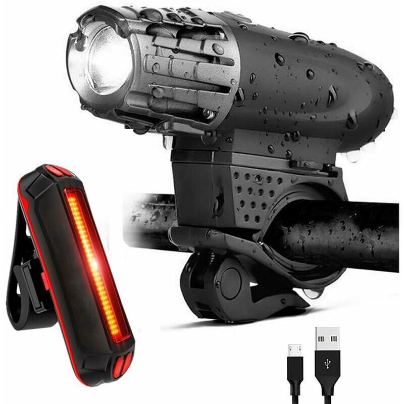 Luci per bici ricaricabili tramite USB - Le luci per bici anteriori e posteriori sono ricaricabili tramite USB, quindi non devi cambiare le batterie ogni settimana, i fari a LED ti illuminano al buio. I fanali posteriori a LED hanno un ampio angolo di visione, aumentando la visibilità complessiva della strada, soprattutto agli incroci. Questa luce per bici ricaricabile USB ti offre una visione notturna perfetta e una protezione superiore. 【Modalità multiple】4 modalità faro: modalità automatica, modalità luce principale 50%, modalità luce principale 50%, modalità lampeggiante. Questi fanali posteriori hanno 5 modalità tra cui scegliere: luce forte, luce normale, luce debole, flash veloce, modalità flash lento. Puoi passare da una modalità all'altra con un solo clic. La durata della batteria dipende dalle diverse modalità. 【Impermeabilità IPX6】La luce per bici a LED è impermeabile IPX6. Tecnologia avanzata impermeabile e antipolvere, adatta a tutte le condizioni atmosferiche, che si