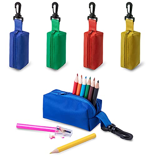 ANTEVIA - Set di 4 astucci di 8 matite colorate + 1 temperino (32 matite + 4 temperini). Oltre 15 modelli. Colore: blu, giallo, rosso, verde (Migal)
