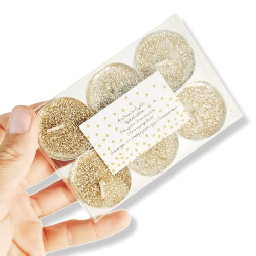 ANTEVIA - Set di 6 candele piatte glitterate dorate inodori | Oltre 10 modelli | Festa di Natale (Virtuapail d'oro)