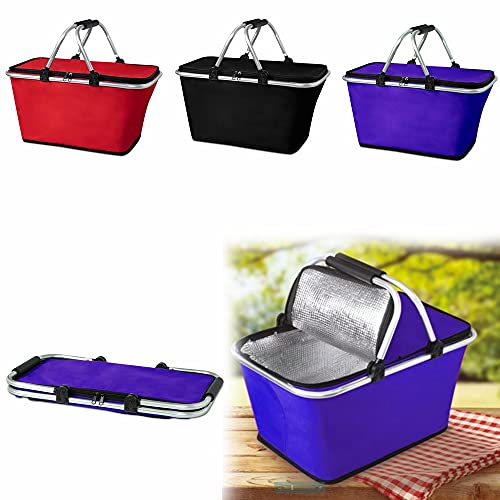 Cestino da picnic pieghevole con telaio in alluminio e manici imbottiti, poliestere 600D