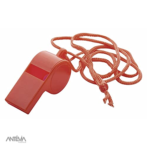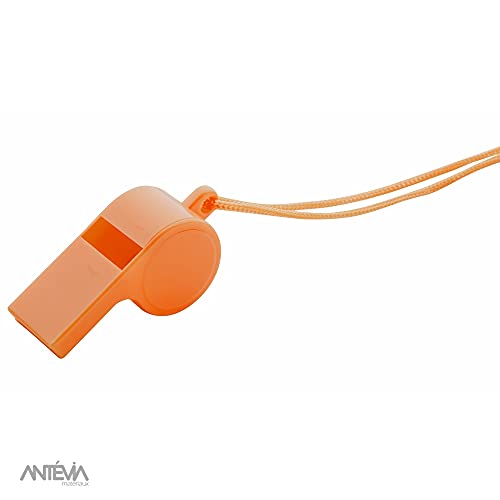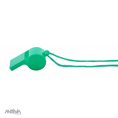 Antevia - Set di 6 fischietti sportivi con corda per bambini, più di 10 modelli, materiale: plastica, colori: bianco, blu, giallo, arancione, rosso, verde