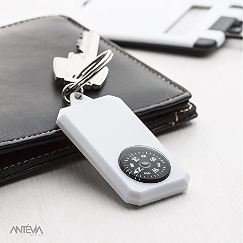 ANTEVIA - Set di 5 portachiavi con bussola | oltre 10 modelli | Materiale: plastica | campeggio escursionismo all'aperto, colore: bianco (Magellan)