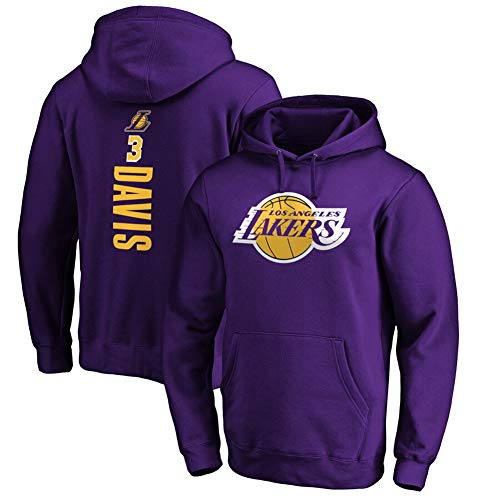 XSSC # 3 Anthony Davis Lakers Felpa con Cappuccio da Basket Maglia da Uomo Pullover Felpa Tuta da Allenamento Ragazzo Casual Traspirante Regalo di Festa Nero S-3XL 1Hoodie Maglione Purple-XXXL