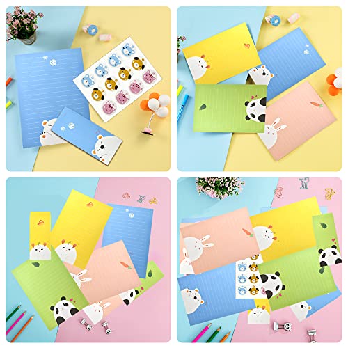 ANTHYTA 78 Pezzi Set di Carta da Lettere e Buste in Stile Cartone Animato 48 Carta Lettere Decorata e 24 Buste con Carino Motivo Animale e 4 Adesivi Carta da Lettere per Scrivere e Disegni - 4 Colori