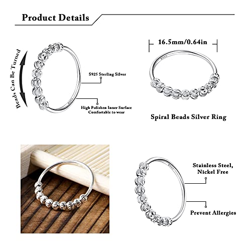 【Materiale premium】 Queste perle L'ansia Anelli in argento sterling 925, taglio poligonale sono finemente tagliate, curve e altamente lucidate all'interno, rendendo l'anello girevole molto comodo da indossare. Nickel free e ipoallergenico per pelli sensibili. È ipoallergenico/sbiadito/antiruggine e resistente ai graffi.