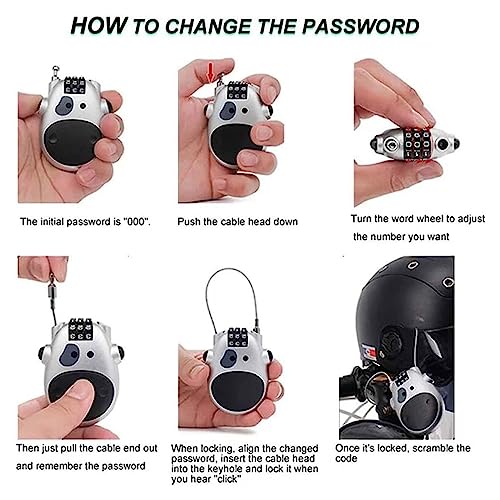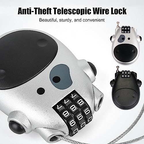【Cute Cow Design】this retractable combination lock has a cute cow look and features a reinforced ABS housing, the lock body and cylinder are made from high quality materials so you can use it for a long time without damage.