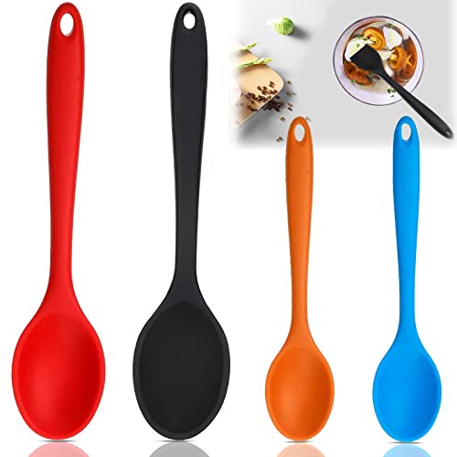 Antiaderente Multicolore Cucchiai Silicone Strumenti Miscelazione Cucchiaio Set Mescolando Cottura Silicone Cucchiaio Per Mescolare Cottura Strumenti Cucina 4 Piccoli Nero Rosso Blu Arancione