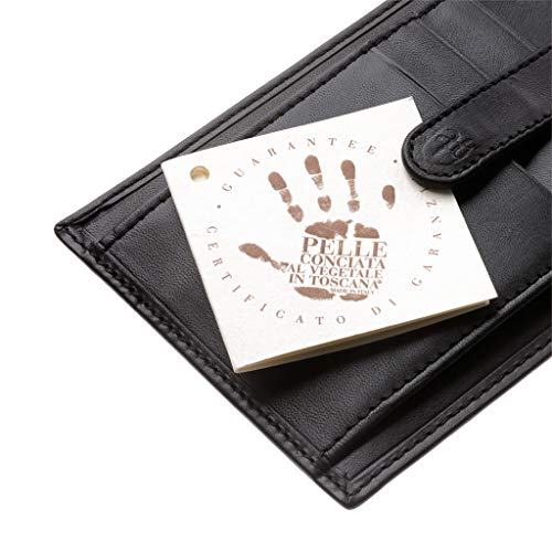 Antica Toscana Porta carte di credito Uomo in Vera Pelle Italiana Porta tessere Sottile Slim con bottone a clip Nero