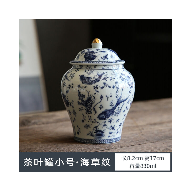 Antico blu e bianco porcellana sigillata tè Caddy decorazione Desktop scatola di bottiglie modello di pesce vaso di stoccaggio in ceramica barattolo di caramelle,S