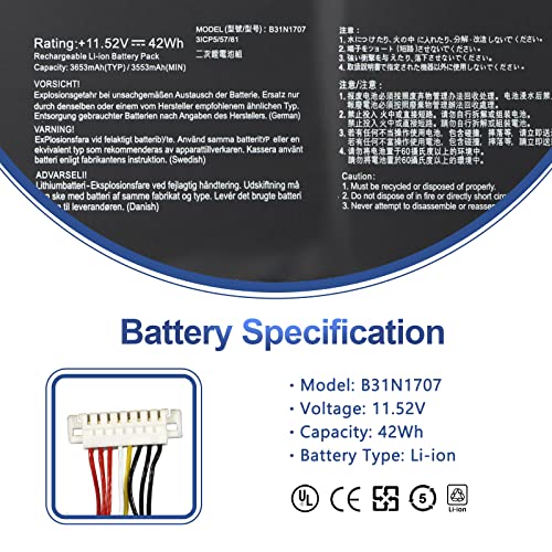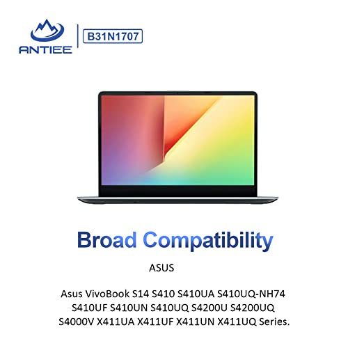 ANTIEE B31N1707 B31N1707-1 LaptopBatteria per Asus VivoBook S14 S410 S410UA S410UQ-NH74 S410UF S410UN S410UQ S4200U S4200UQ S4000V X411UA X411UF X411UN X411UQ Series 11.52V 42Wh 3653mAh