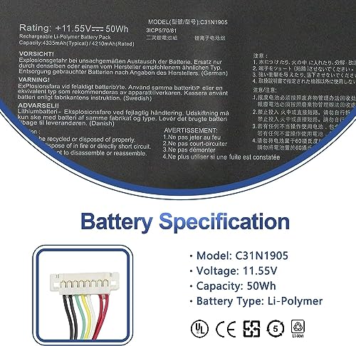 【Numero di parte compatibile】C31N1905 3ICP5/70/82.