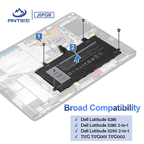 ANTIEE 42Wh J0PGR Laptop Batteria Compatible with Dell Latitude 12 5285 5290 2-in-1 Series Notebook 0J0PGR JOPGR 1WND8 X16TW 0X16TW 0FTH6F FTH6F 7.6V 5250mAh 4-Cell