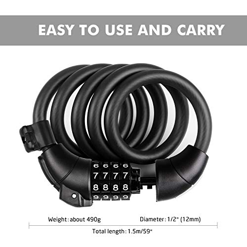 Multifunzione: la serratura del cavo è lungo 1.5 m/12 mm Diametro, ideale per biciclette, skateboard, attrezzatura sportiva, cancelli e recinti, grill e tagliaerba, attrezzi, cassette porta attrezzi e scale.