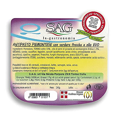 Antipasto piemontese con tonno e verdure fresche, (Confezione 1 pz. da Kg) - SAG