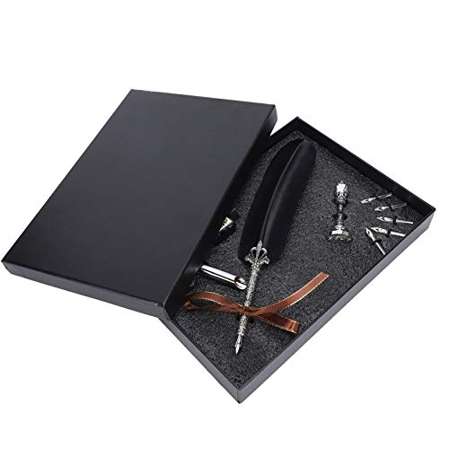 DUREVOLE: È possibile utilizzare sei punte di penna diverse per scrivere parole di dimensioni diverse. La scritta è liscia, resistente all'usura e non si danneggia facilmente. Il fusto e le vere piume permettono alla penna di durare per molti anni.