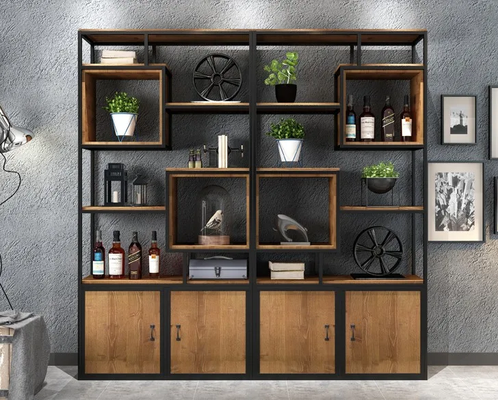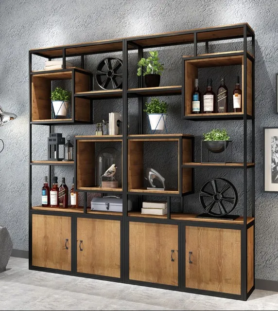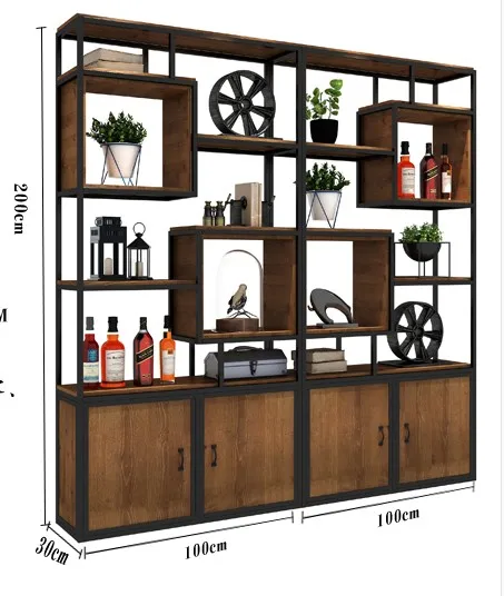 Iron Antique industrial wind Shelf Office porch partition bookshelf cabinet storage cabinet loft display frame screen