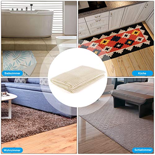 Regolabile: è possibile utilizzare le forbici per adattare la base a qualsiasi dimensione. Una volta tagliato, può essere posizionato sotto qualsiasi tappeto per ottenere un effetto antiscivolo. Per tappeti molto grandi, potete inserire più basi l'una accanto all'altra per ottenere un effetto antiscivolo.