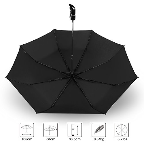 Grande e portatile: 105 cm Diametro grande ombrello è facile da ospitare due persone sotto la pioggia battente. Misure 13 in (33 cm) lungo quando ripiegato, che consente di riporre ovunque. Ombrello portatile e leggero, ideale per i viaggi.