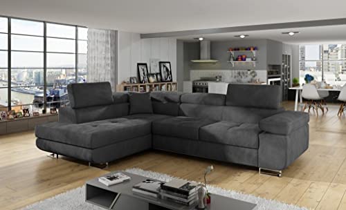 Antonia Divano angolare a forma di L, posizionabile a sinistra/destra, contenitore per biancheria, funzione sonno, 3 poggiatesta regolabili, molte varianti di colore (sinistra, Monolith 92)