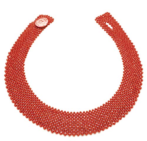 Antonino De Simone Collier tessito con Pallini in Corallo Rosso del mediterraneo (Linea Trame di Corallo). Chiusura con Bottone in Argento 925 (Argento Rosa 925)