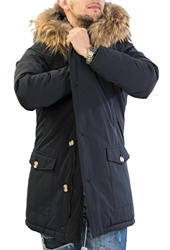Antony Morale Giubbotto Parka Uomo INVERNALE Colori (Nero, Rosso, Blu) Con Pelliccia Vera Volpe Removibile 3 Colori Disponibili (Blu Scuro, l)