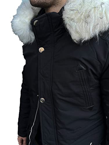 Antony Morale Giubbotto Parka UOMO INVERNALE (VERDONE, NERO, SENAPE) interno di pelliccia Cappuccio con pelliccia uomo 3 COLORI 7105 (L 50, NERO)
