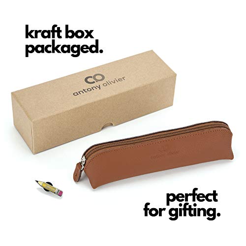 Antony Olivier Astuccio in Vera Pelle | Beige con Cerniera | per Uomini, Donne, Studenti e Professionisti | Ideale per Cancelleria e Arte e Kraft | Confezionati in una Bella Confezione Kraft