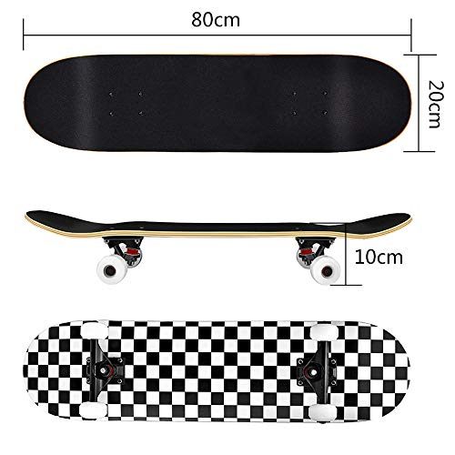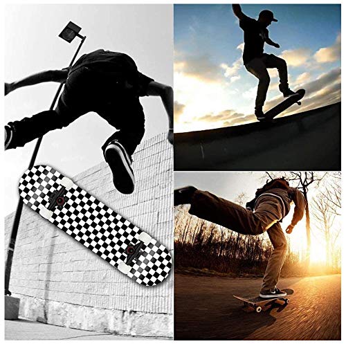 ANTSBOOM Skateboard 31 pollice / 7 strato Acero duro / ABEC-7 / Plaid Skateboard / scacchiera / con ruota PU-Bianco e nero