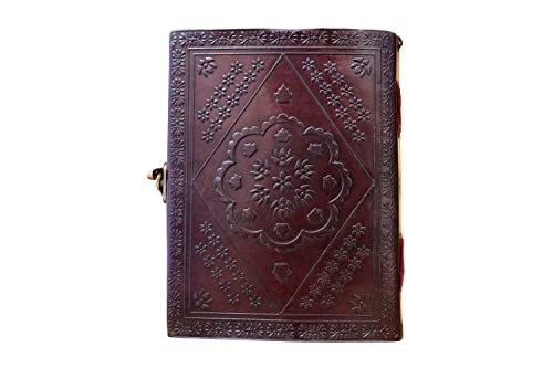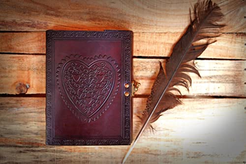 ANUENT Riviste in pelle Diario per notebook grande in pelle goffrata con cuore vintage vintage (carta fatta a mano) - Copto rilegato con chiusura a lucchetto