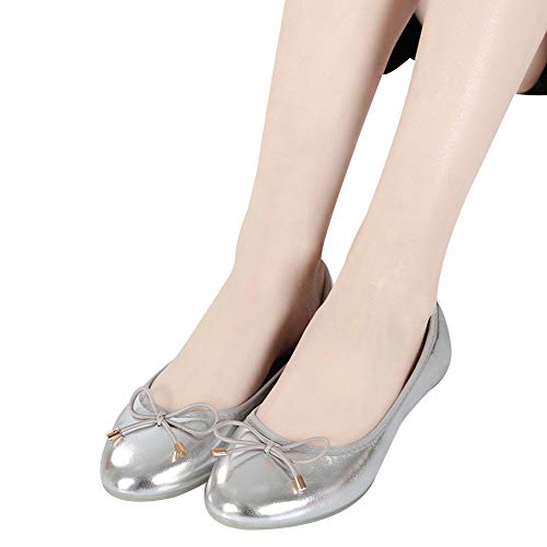 ANUFER Donna Bella Bowknot Morbida Senza Allacciatura Ballerine Pumps Scarpe Dolly Punta Tonda Argento SN02752 EU35