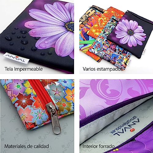 ANVAL Custodia per libro, impermeabile, con cerniera, tasca esterna - Protezione per libri, adattabile a qualsiasi spessore, custodia a libro in carta - Fodera a libro in tessuto stampato (MUSIC)