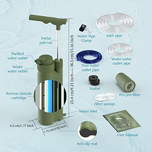 ANVIGO Filtro Acqua Potabile Outdoor, 10000L Filtro Acqua Portatile a Carbone Attivo, Personale Depuratore Acqua di Emergenza Rimuovi 99,999% di Batteri e 0,001 Micron Filtrata per Trekking Campeggio