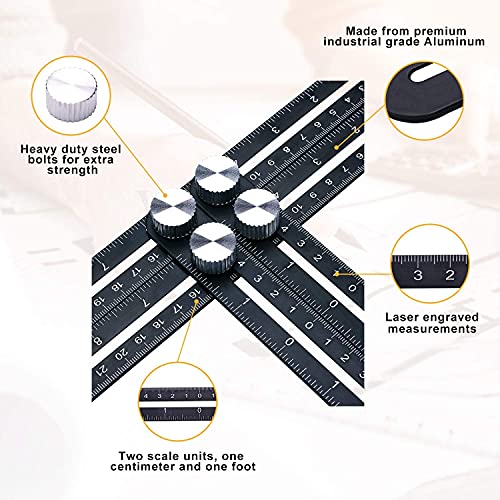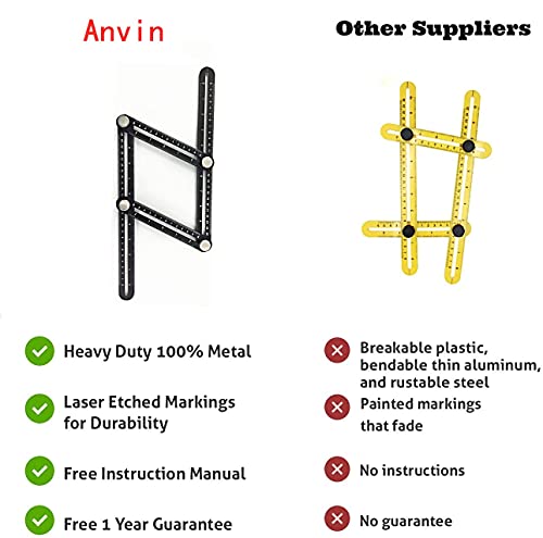 Anvin - Righello multiangolare, in lega di alluminio, multi-angolo, strumento per modellare, strumento di layout per fai da te, costruttori, artigiani, fai da te