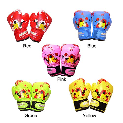 Anwangda - 1 paio di guanti da boxe per bambini, per bambini dai 2 agli 11 anni, in poliuretano, per allenamento con cartoni animati, per kickboxing, boxe, boxe, pad per messa a fuoco, colore: blu
