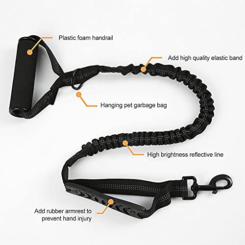 Anwangda Guinzaglio da jogging per cani di taglia grande e media taglia con anello a D, guinzaglio regolabile per cani di taglia grande, mani libere e ammortizzanti (nero)