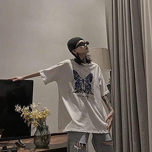 KAL'ANWEI Tshirt in Cotone Donna Harajuku Butterfly Stampa Y2K Tops Estetic Vintage Femme T-Shirt T-Shirt Stile Coreano Tshirt Oversize-Bianca_L.