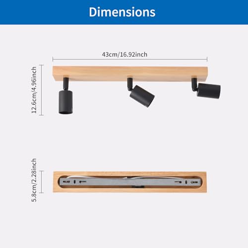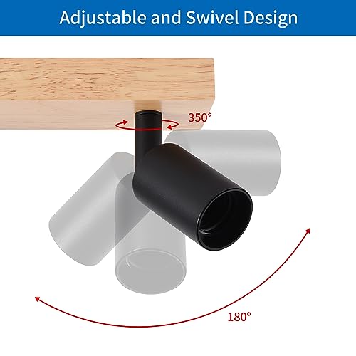 ANWIO Faretti da Soffitto Neri Orientabili,Faretti da Muro,Lampada Soffitto con 3 Lampadine LED Attacco E27,Applique da Parete,Base di Legno, Plafoniera per Negozio,Bar,Vetrina(Lampadine Escluse)
