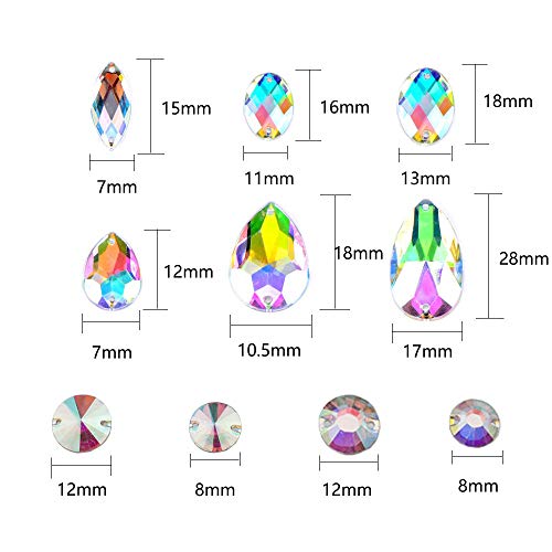 Anyasen AB Chiaro Acrilico Gemme 200 Pezzi Pietre da Cucire Cristallo Artificiali da Cucire Posteriore Piatto Strass per Decorazione di Abbigliamento Fai da Te(AB Trasparente)