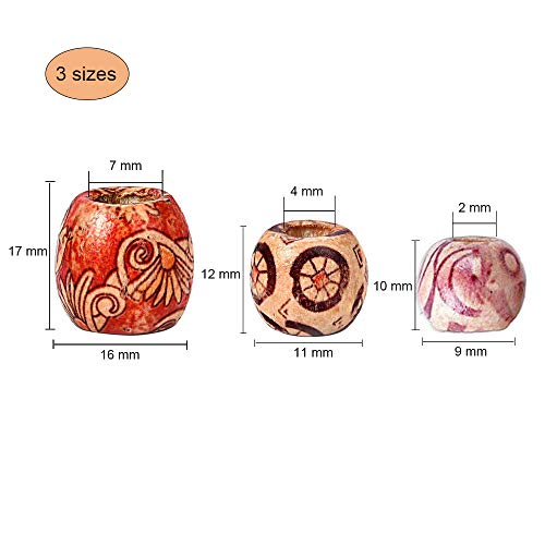 Tre diverse dimensioni: larghezza e altezza delle perle di legno sono circa 9 * 10 mm, 11 * 12 mm, 16 * 17 mm;