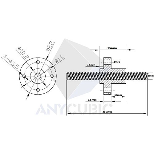 Anycubic T8 Diametro 8mm 4 Inizio Piombo Vite e Dado per Stampante 3D Asse Z (T8 L450mm vite madre con dado)