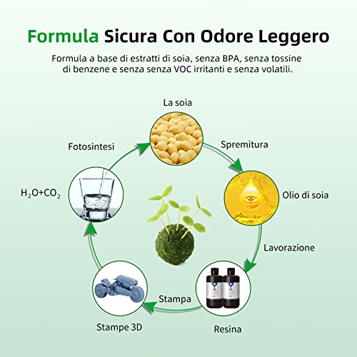 . ANYCUBIC Resina vegetale Realizzata con olio di semi di soia, senza VOC, senza BPA, senza sostanze chimiche nocive. Conforme alla norma di sicurezza EN 71-3:2013