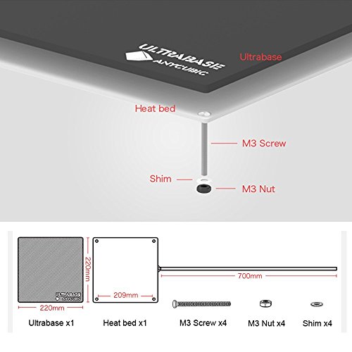 Anycubic UltraBase piattaforma, 220 * 220 Ultrabase, 220 x 220 mm, 1