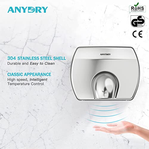Anydry 2830 Compatto Asciugamani Elettrico con fotocellula, salvaspazio Lucidato Acciaio Inossidabile Asciugatura Rapida 1350w.
