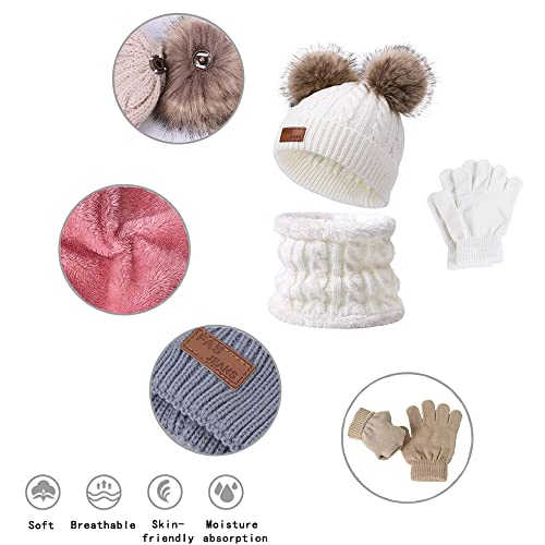 Anyingkai Cappello Invernale Bimbo,Cappello Bambina Invernale Pon Pon,Cappello Invernale Bambino,Maglia con Sciarpa,Bambino Cappello Inverno