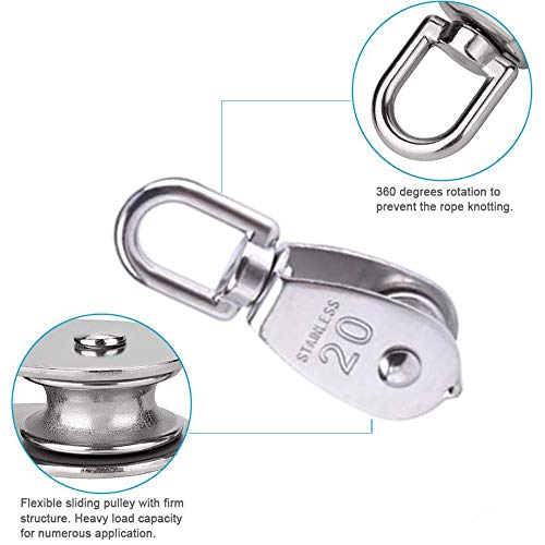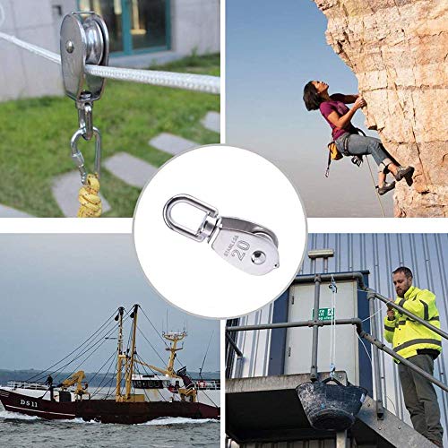 ☞ 【Ampia applicazione】 : Una ruota livellante in acciaio inossidabile 304, una puleggia di trazione, una puleggia incrociata ed è perfetta per zaini, portachiavi, catene, corde, campeggio, escursionismo, pesca, animali domestici, attrezzatura da esterno per interni, accessori fai da te, fitness, sospensione Ciclismo, alpinismo e fitness indoor-outdoor, ecc.