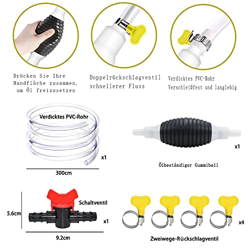 ⛽ 【Facile da usare】: premere due volte - tre volte e la benzina scorrerà da sola. Naturalmente, la direzione del flusso deve essere rispettata e il contenitore deve essere più alto del serbatoio. La valvola di ritegno integrata può prevenire efficacemente il riflusso del liquido.