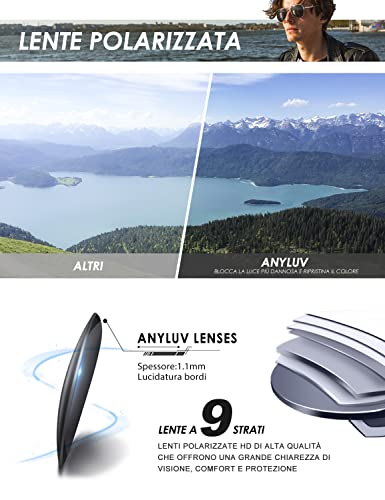 ANYLUV Occhiali da sole Uomo Donna Polarizzati Stile Pilota Metallo Classico,Premium Occhiali da Sole Specchio Protezione UV