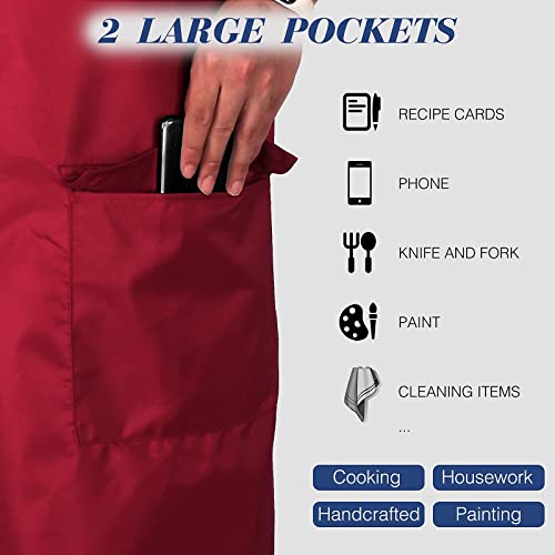 Anyoo Grembiule da Cucina Impermeabile con Cinghie Regolabili, Donna e Uomo Grembiule Lungo con 2 maniche e tasche, Borgogna, Taglia Unica