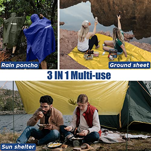 Anyoo Impermeabile Poncho Pioggia Leggero Multiuso Impermeabile con Cappuccio Packable Telo Riparo a Terra Foglio Ideale per Campeggio all'aperto Trekking Pesca Sopravvivenza, Giallo, Taglia unica