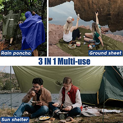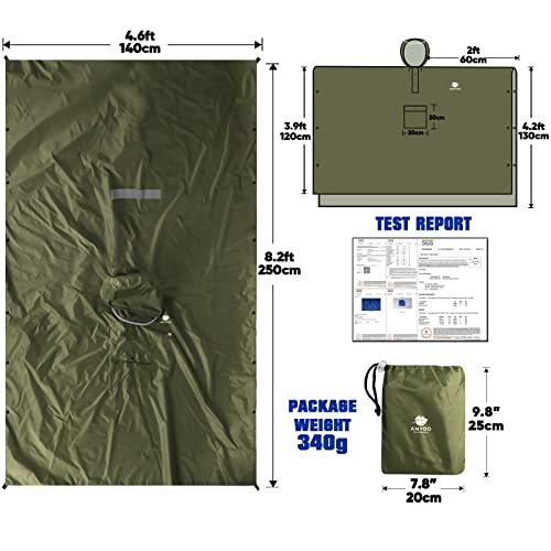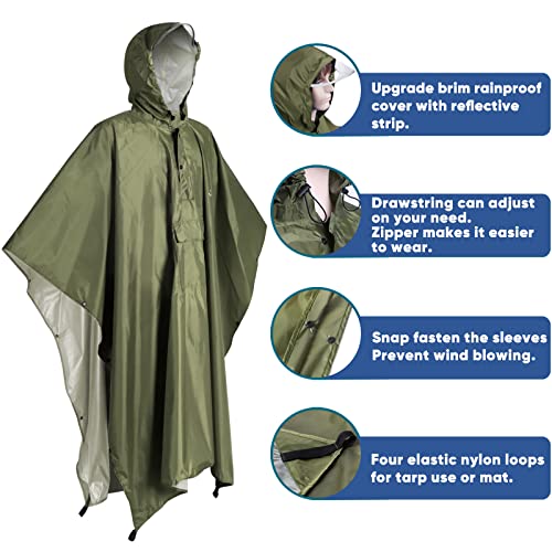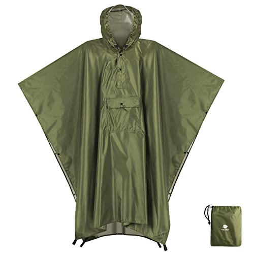 Anyoo Impermeabile Poncho Pioggia Leggero Multiuso Impermeabile con Cappuccio Packable Telo Riparo a Terra Foglio Ideale per Campeggio all'aperto Trekking Pesca Sopravvivenza, Verde, Taglia unica